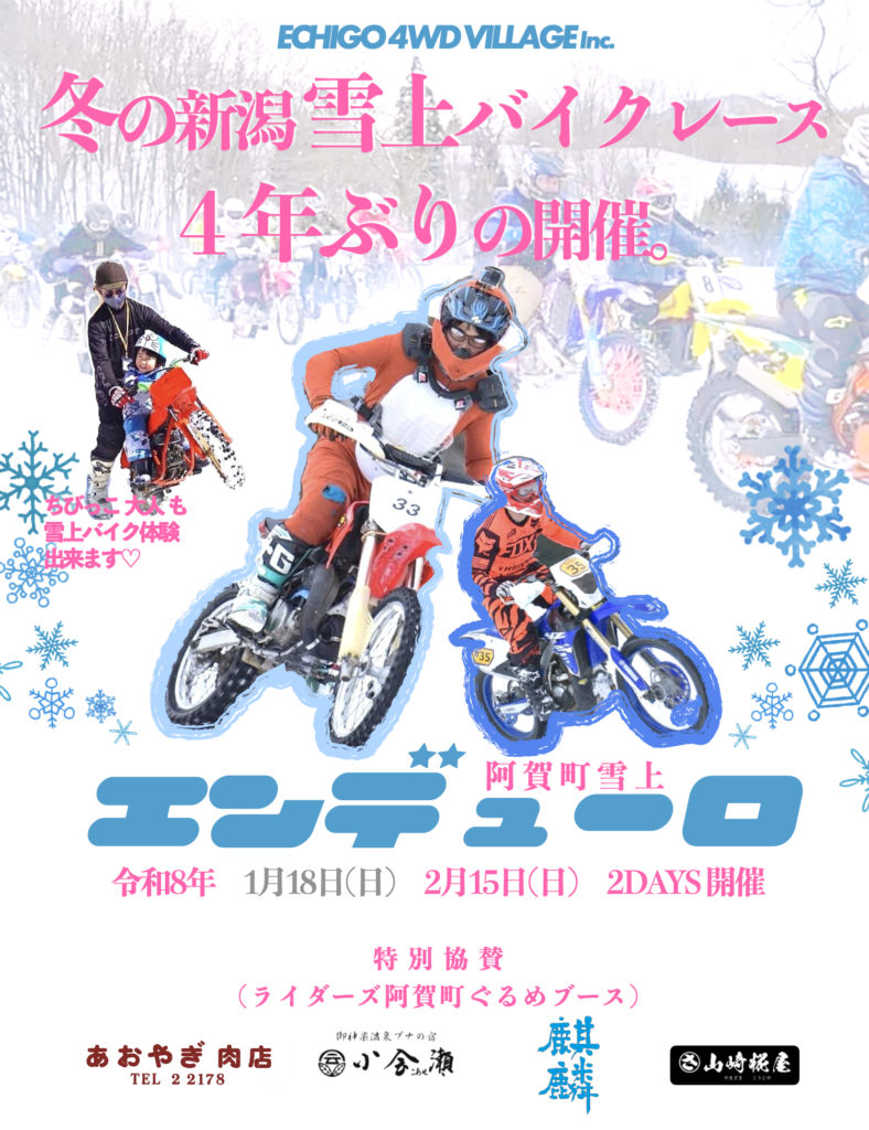 ご参加ご検討中される皆さまはこの”阿賀町雪上エンデューロ2026DAY2″イベントメインページをブックマーク保存お願いいたします。