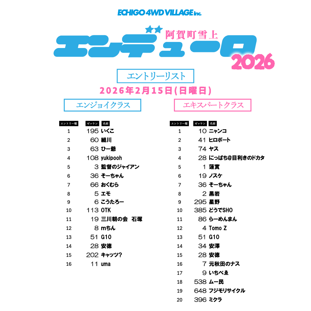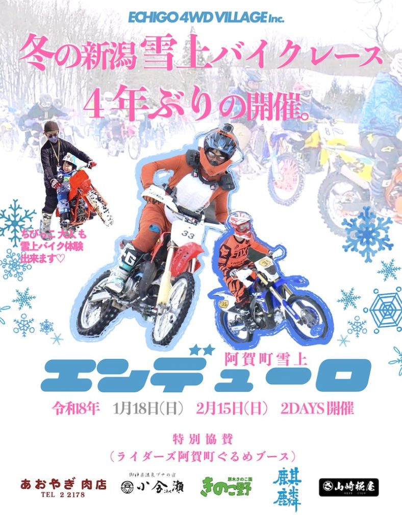 こちらの 阿賀町雪上エンデューロ2026 DAY2.イベントメインページとなります。