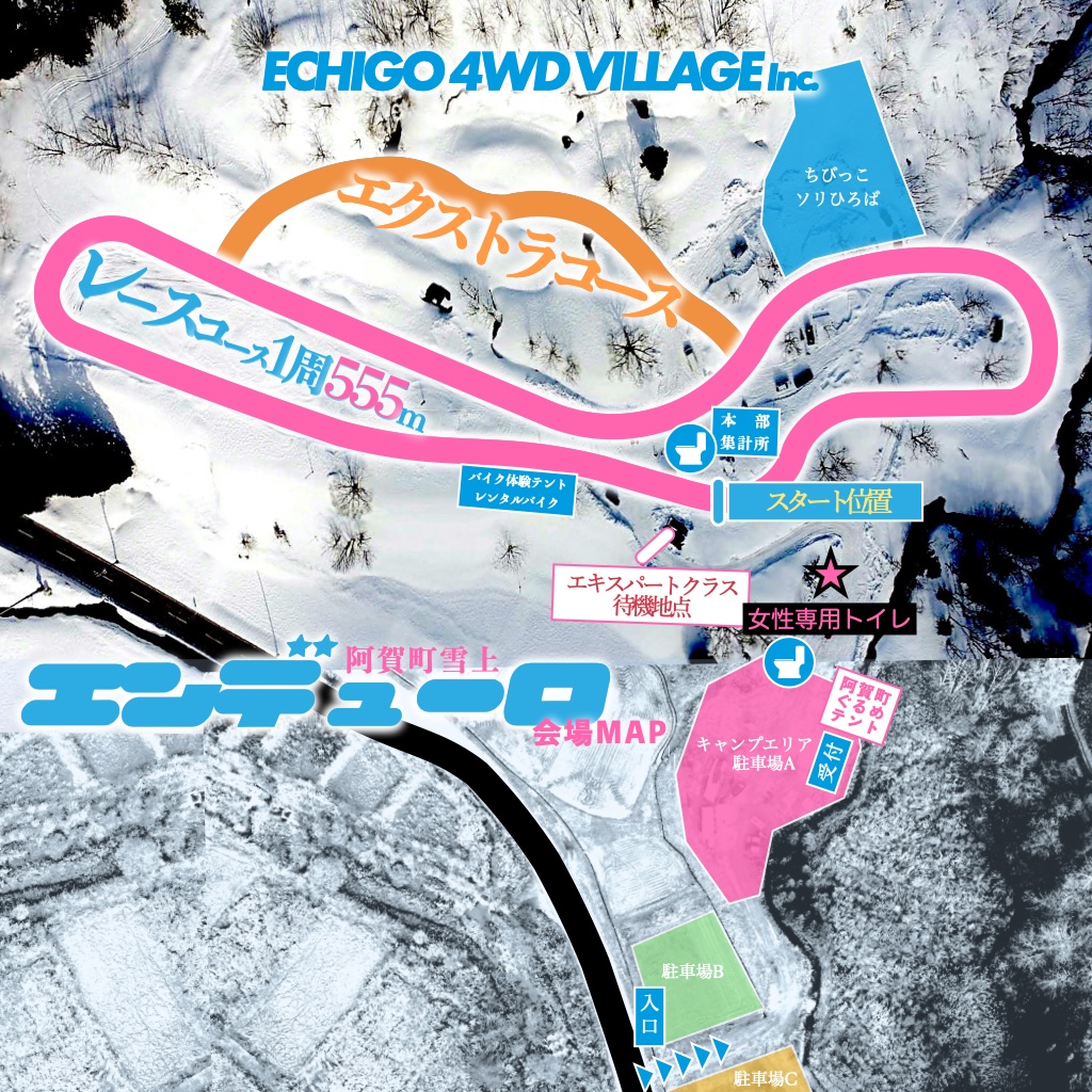 レースは当然ですが、前泊雪上キャンプもガッチリエンジョイ&ヤミー、アフター阿賀町特製汁とフリー走行でチルするもOK。思う存分に大雪の阿賀町を楽しんでください。